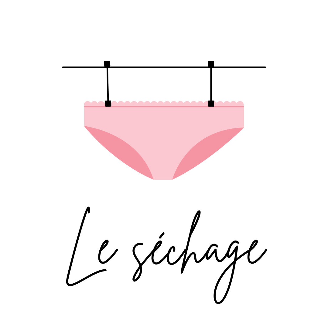 Let your panties air dry. Above all, do not use a dryer or a radiator to speed up drying, this would irreversibly affect the absorbency of the insert in your period panties